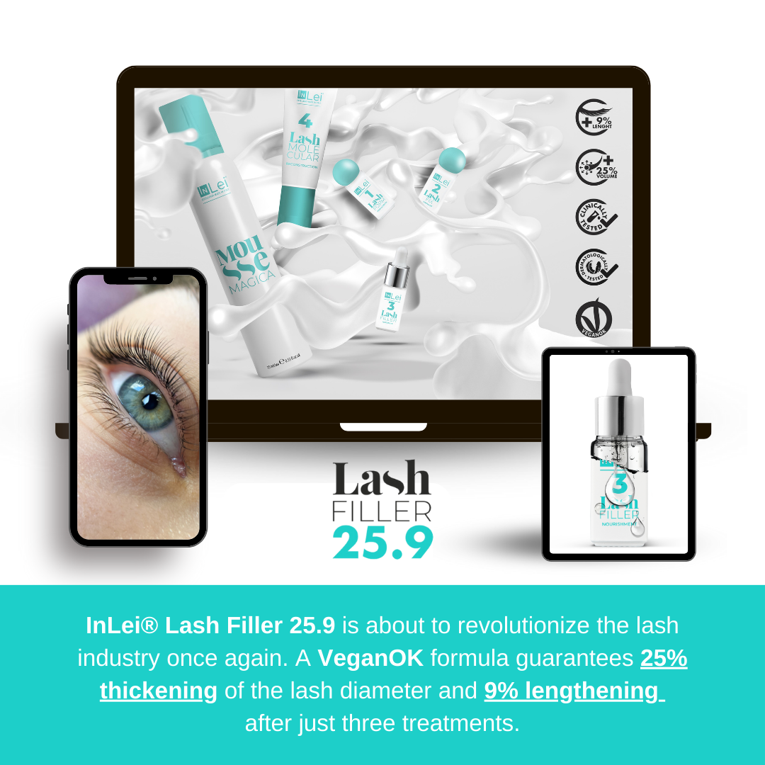 In the InLei® Lash Filler Master Class, you'll learn about the innovative treatment that has revolutionized the Lash Lifting/Lamination industry. We're the first to scientifically validate its effectiveness. This course covers the official InLei® Lash Filler 25.9 protocol, both in terms of chemistry and technique. With a thorough understanding, you can optimize each treatment's benefits, ensuring a 25% increase in thickness and a 9% increase in length after just three treatments.