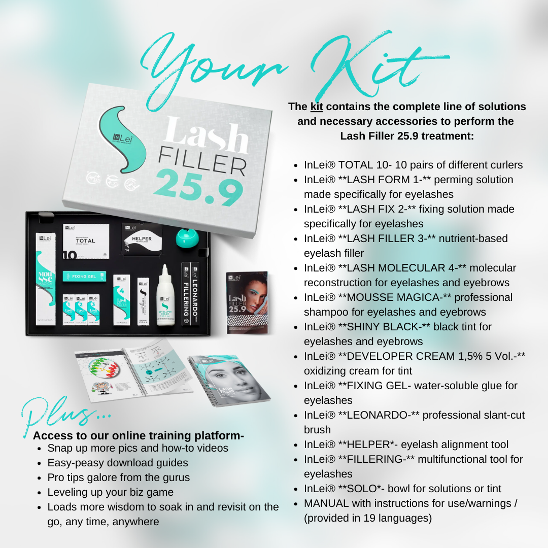 This InLei® Lash Filler 25.9 Masterclass is a comprehensive course designed to equip you with the skills and knowledge necessary to excel in the booming lash industry. It consists of two components: