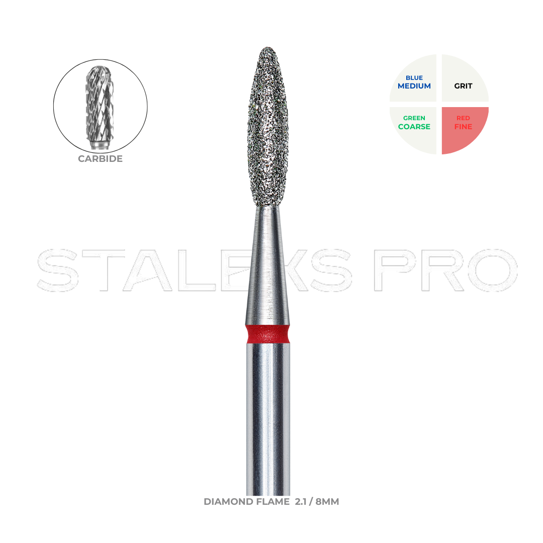 Staleks PRO Diamond Drill Bit | Flame RED | 2.1 mm/8 mm | FINE | FA10R021/8