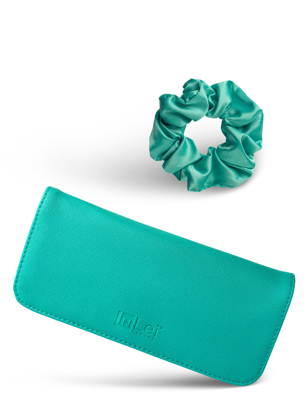 Crafted from soft-touch eco leather in sleek black, it features a green InLei® signature zipper, embossed logo, and an internal elastic pocket to keep everything in its place.